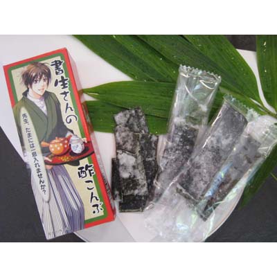 今度は変わったタイトルの小説のイラストを担当するんだなと、どこの出版社なのか調べようとしたら、製造所が書いてあり、よくよくみれば、「酢こんぶのパッケージ」と。